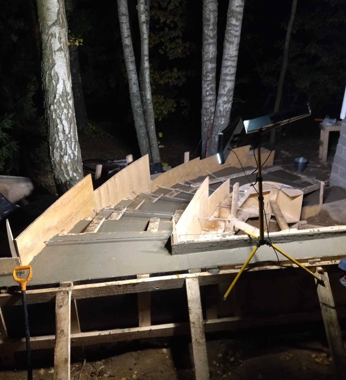 Полный цикл работ: обследование участка и уклонов → расчистка → дренаж(осушение) → вертикальная планировка (в т.ч. инженерные сети) → ландшафт → мощение → озеленение → освещение → заборы.